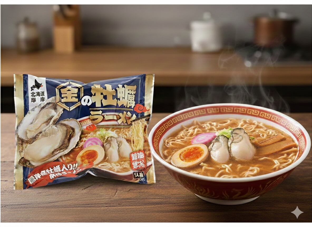 厚岸産牡蠣2個入り!試行錯誤を重ねた本格ラーメンが誕生しました。スープは牡蠣エキスをふんだんに使用した醤油味。厚岸自慢の味覚を贅沢なラーメンでお愉しみください。