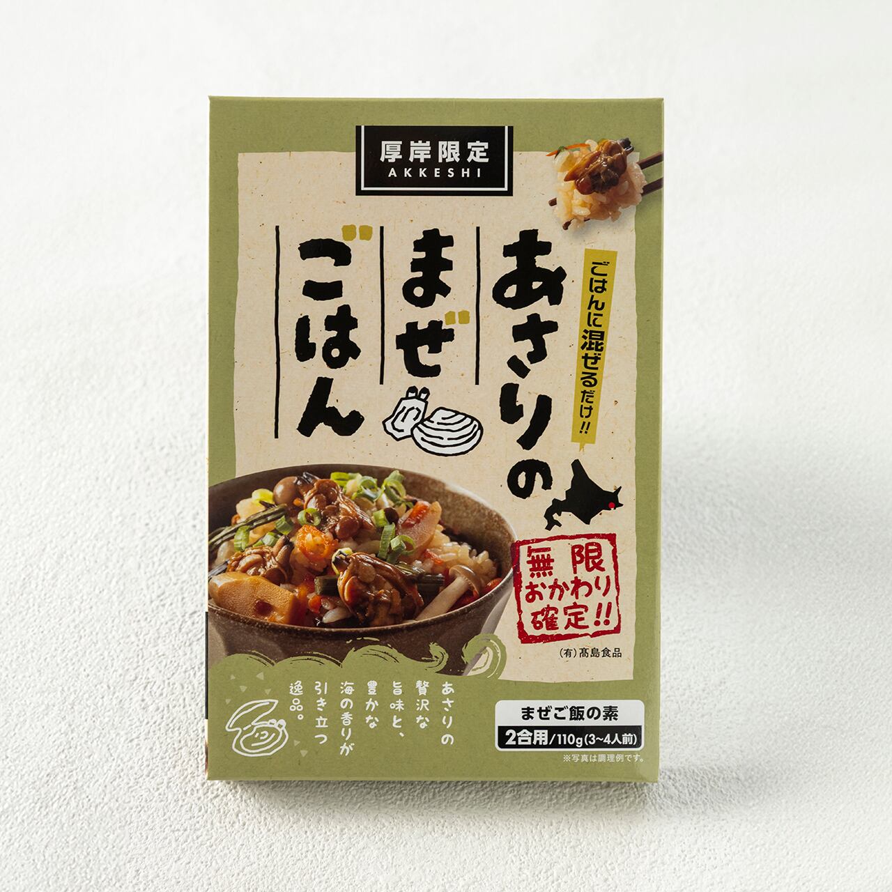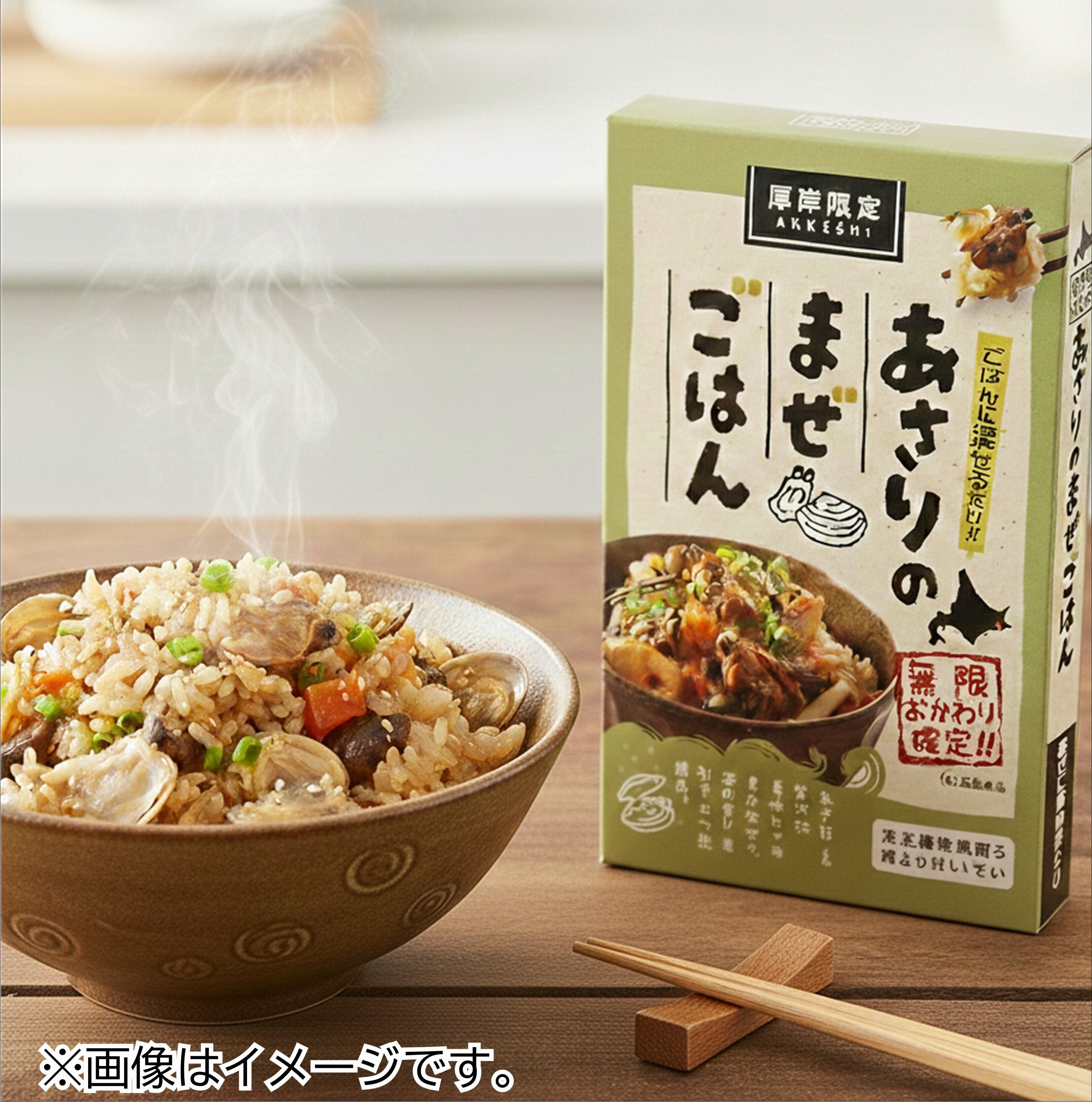 厚岸産のあさりを使用した、風味豊かなまぜごはんの素。温かいごはんに混ぜるだけで、簡単に美味しさが広がります!