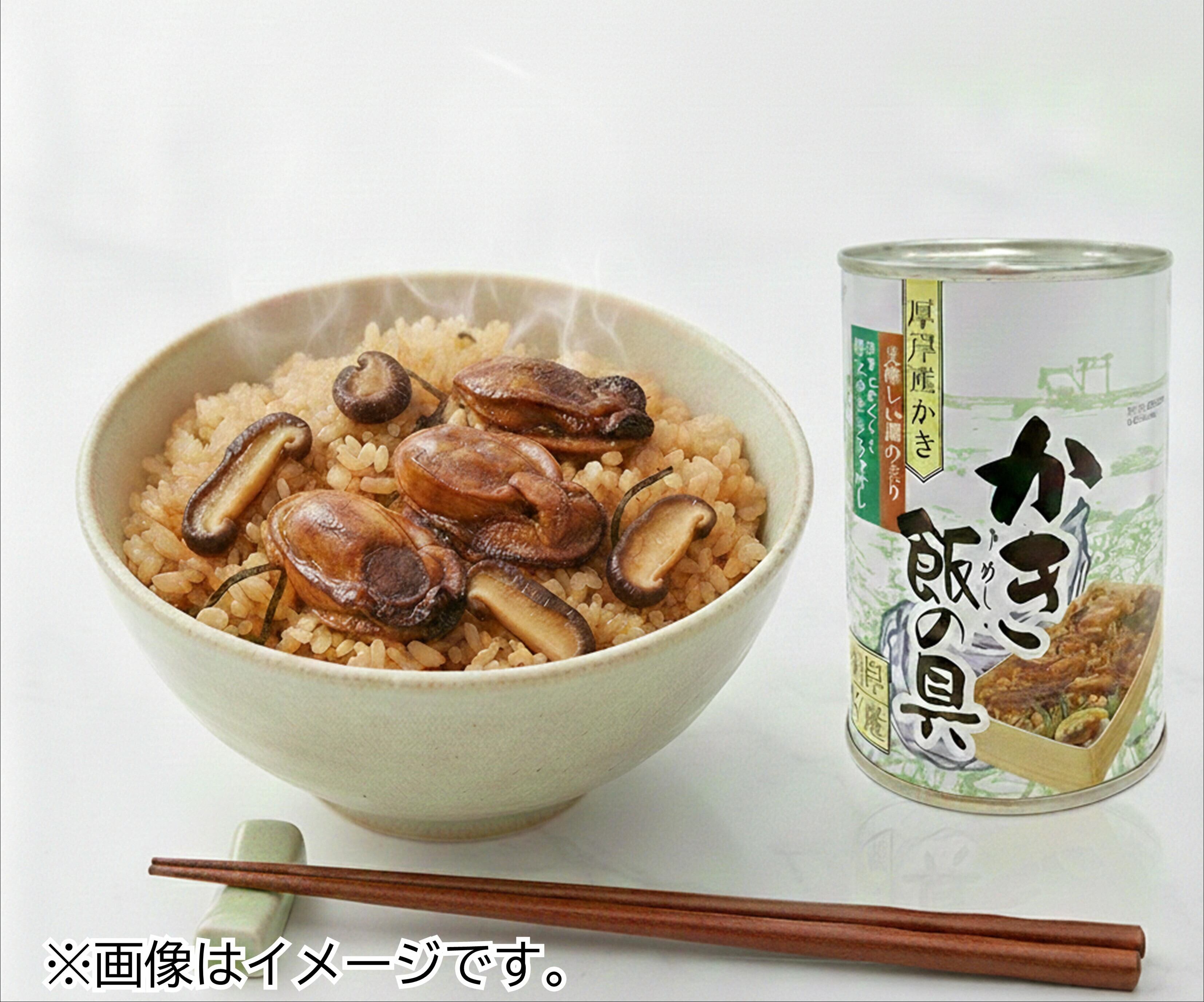 厚岸産かきをはじめ、あさり、ひじき、ふき、椎茸などこれ一缶で美味しいカキ飯がご自宅で再現。水で研いだ2合の白米と本品のだし汁と一緒に炊き上げ、炊き上がったご飯に具材を乗せ完成です。本品だけでももちろんですが、お好みの具材を加えて豪華に炊き上げるもよし。塩味が気になる方は、2号半のお米でお試しください。思い出したい厚岸の味。ちょっぴりしょっぱい漁師町の味。
